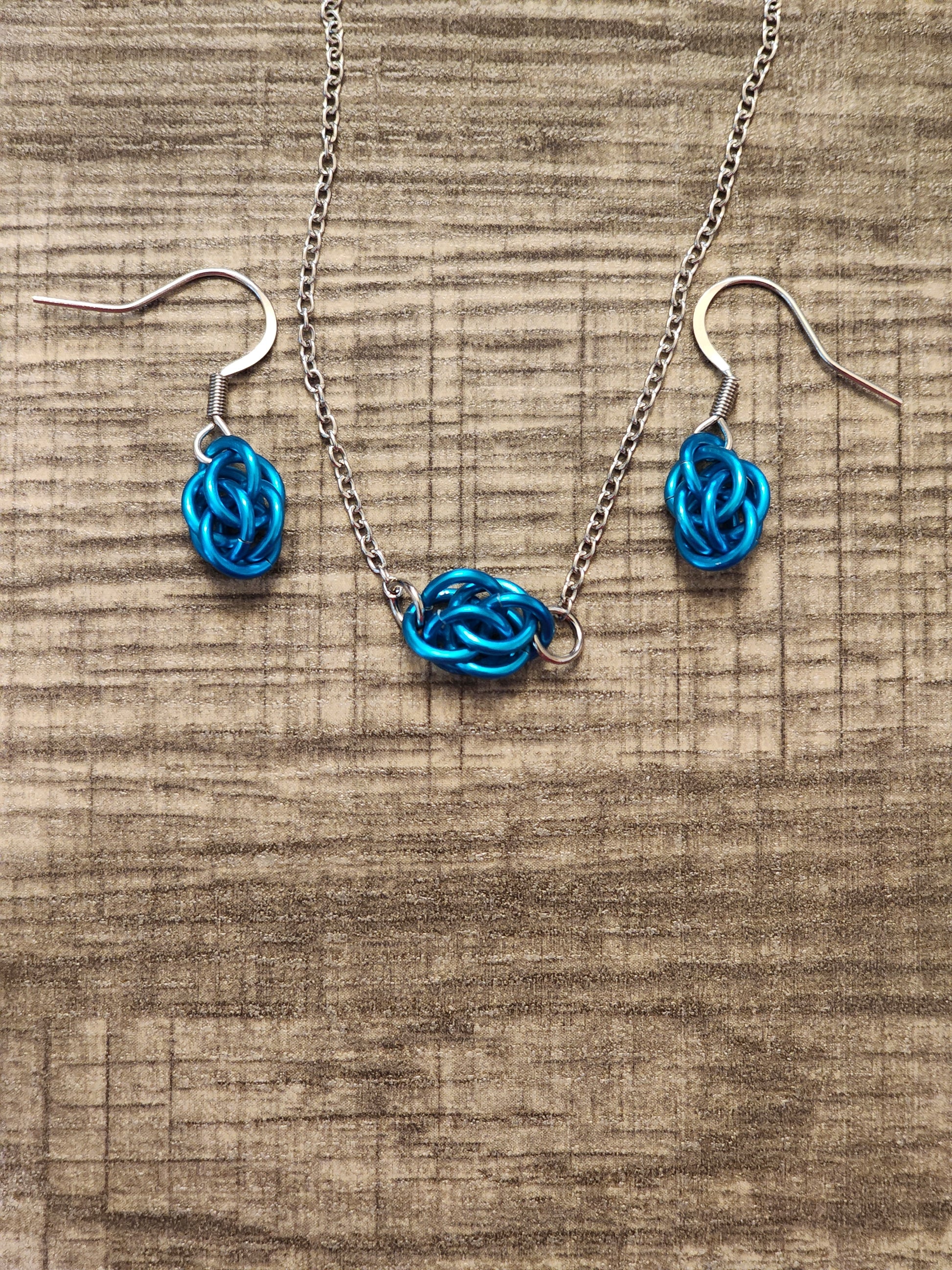 Bright Blue (Maui Blue) Sweet Pea Chainmaille Jewelry Set (Necklace & Earrings)