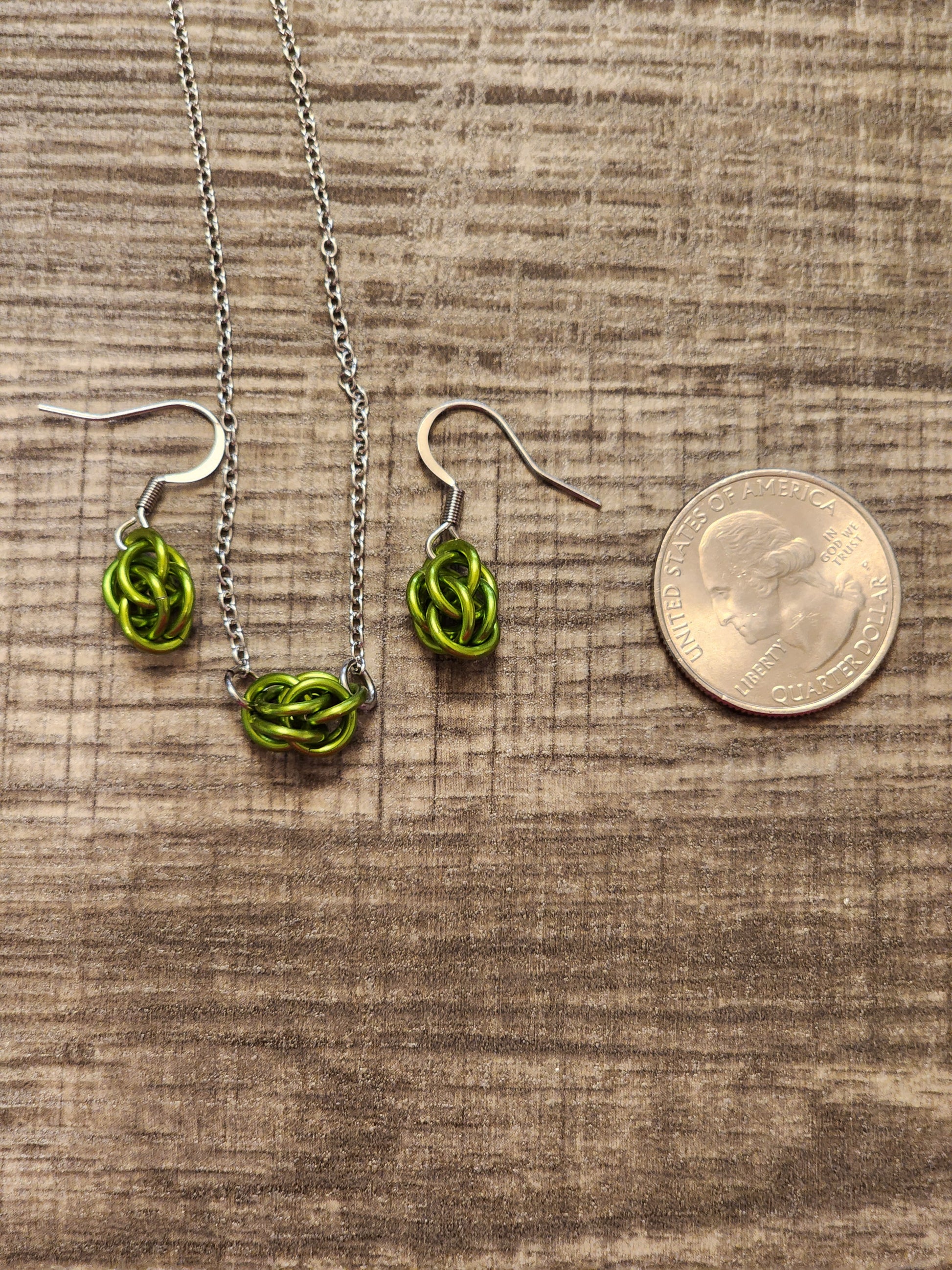 Bright Green (Sour Apple) Sweet Pea Chainmaille Jewelry Set (Necklace & Earrings)