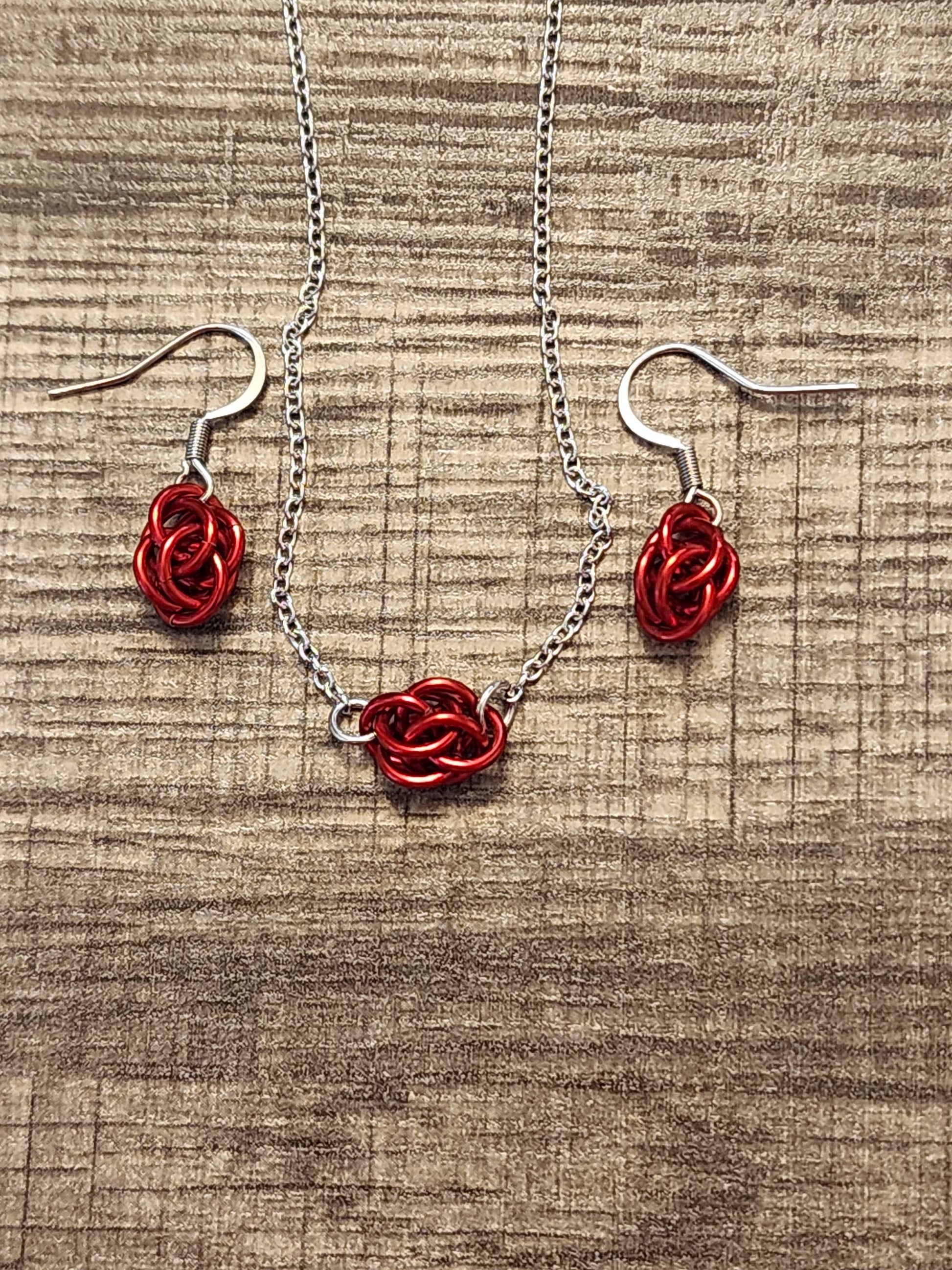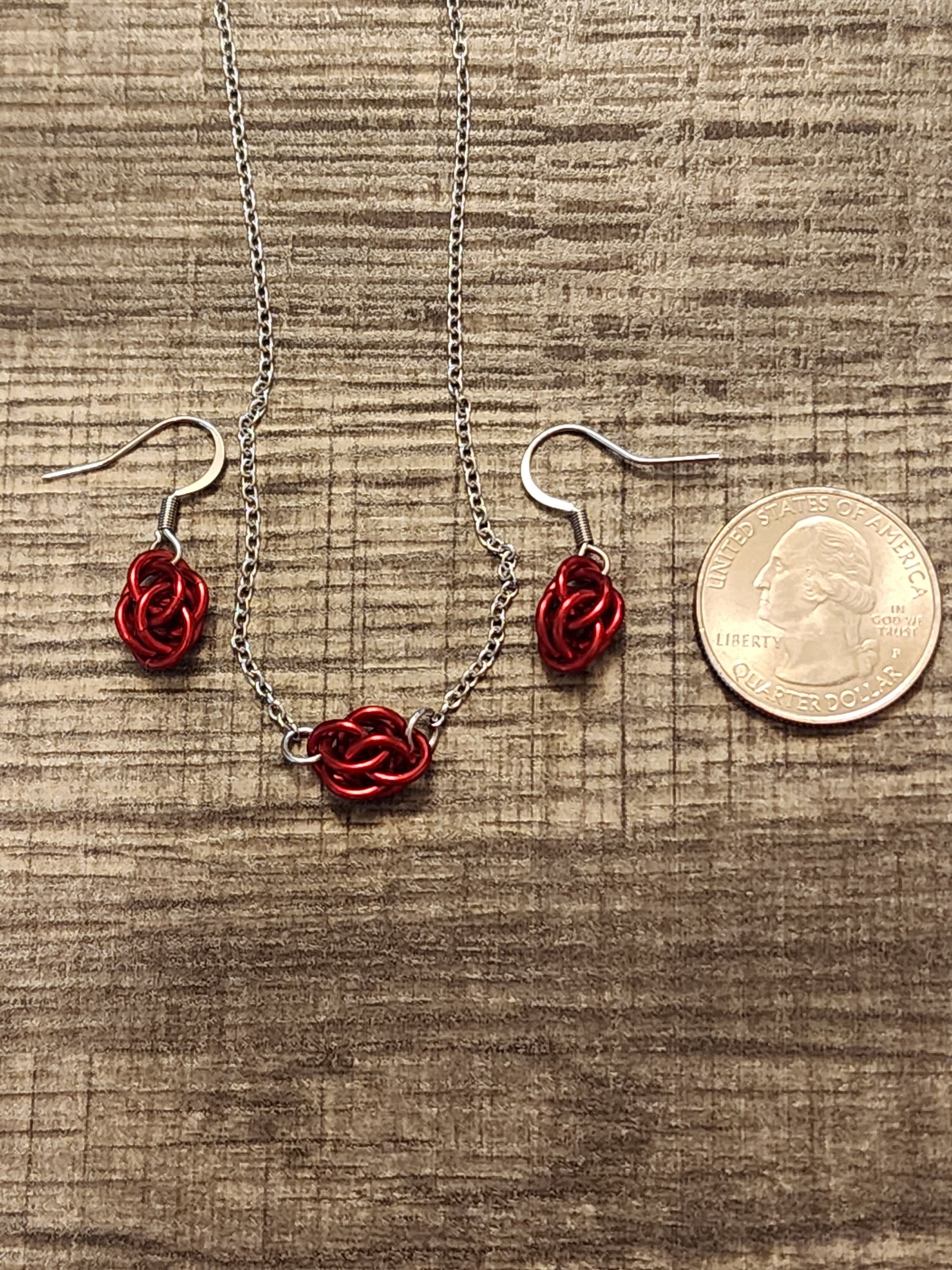 Bright Red (Candy Apple) Sweet Pea Chainmaille Jewelry Set (Necklace & Earrings)