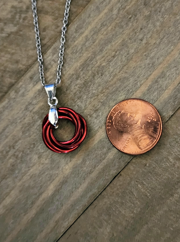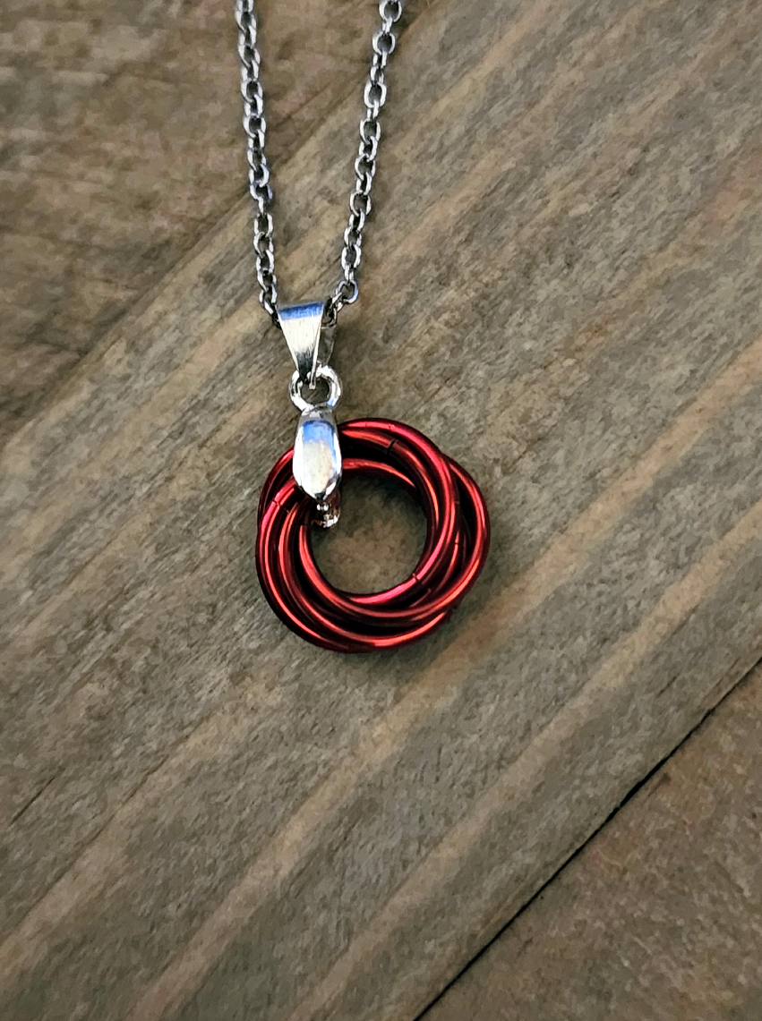 Constructed with anodized aluminum, our Love Knot Necklace combines durability with lightweight comfort, making it ideal for everyday wear. The necklace comes with a sleek 20-inch stainless steel chain, adding a touch of contemporary elegance to the timeless design.