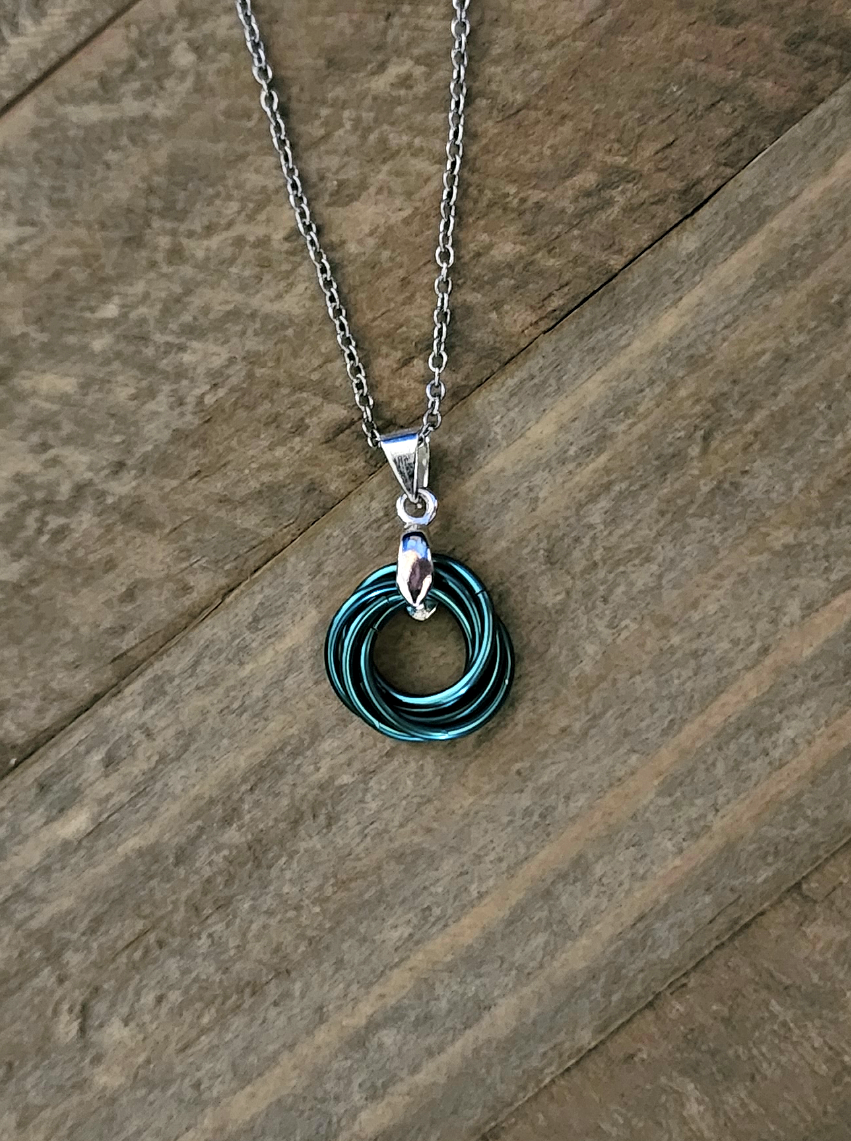 Constructed with anodized aluminum, our Love Knot Necklace combines durability with lightweight comfort, making it ideal for everyday wear. The necklace comes with a sleek 20-inch stainless steel chain, adding a touch of contemporary elegance to the timeless design.