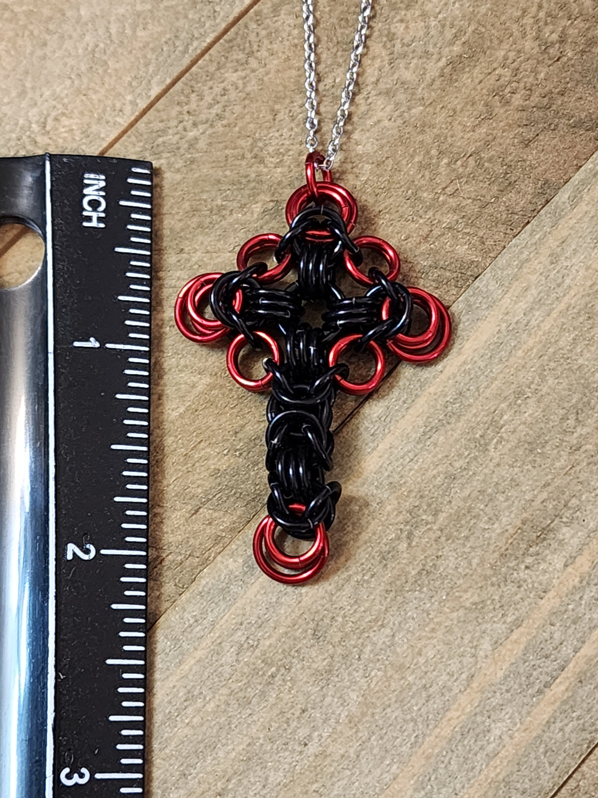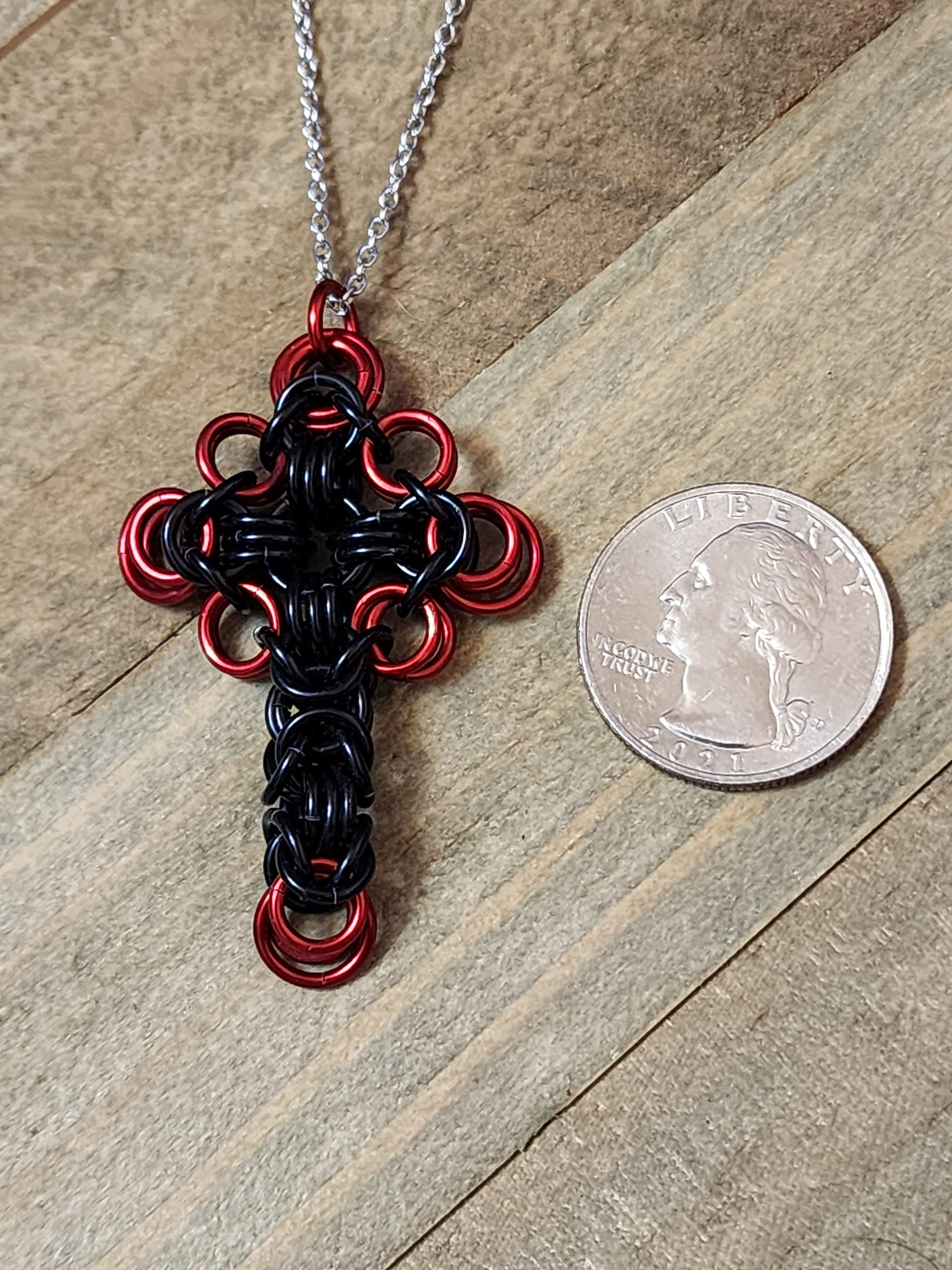 Elevate your faith with the exquisite artistry of our chainmaille cross. This elegant piece not only symbolizes your unwavering devotion but also adds a touch of your distinctive style to your spiritual expression. Embrace faith in a beautifully unique way.